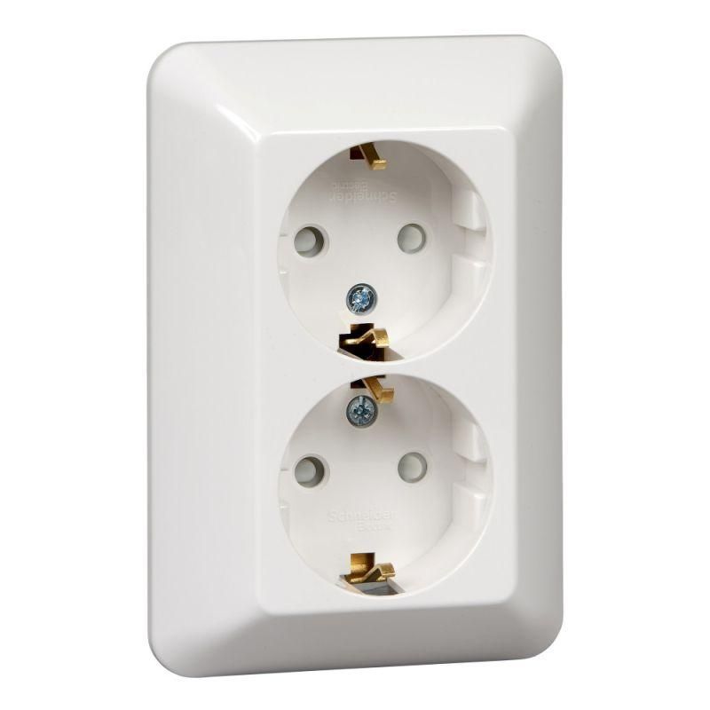 Розетка 2-м СП Прима 16А 250В защ. шторки с заземл. (розн. упак.) бел. SchE RS16-212-BI APC