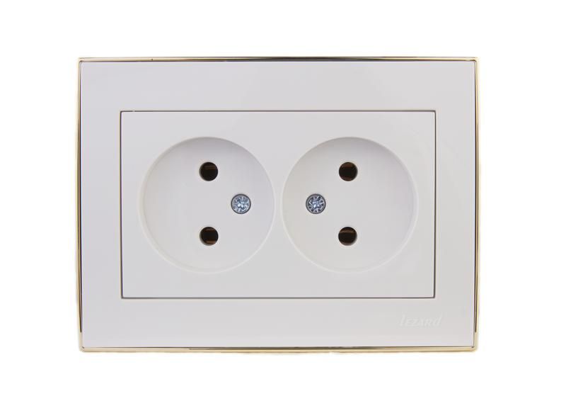 Розетка двойная без заземления керамика белая с боковой вставкой золото рассчитана на скрытую установку в подрозетники стандартного диаметра 68–70 мм. Крепление осуществляется через два винта на распорных лапках. Для монтажа используйте провода сечением не более 2,5 мм2 - большие сечения не войдут в клеммы. Напряжение подключается строго по полярности: фаза - справа, ноль - слева. Заземляющий контакт отсутствует - не пытайтесь адаптировать её для трёхконтактных вилок.