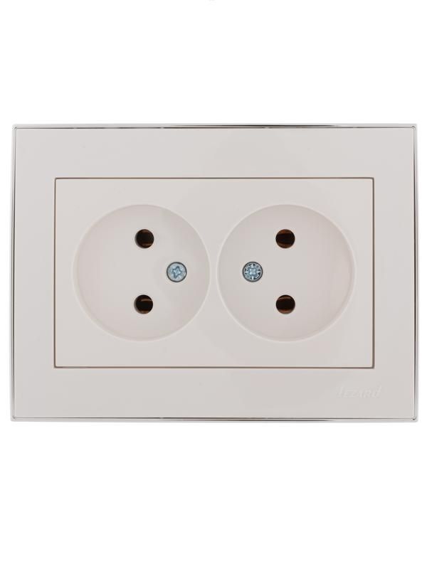 Розетка двойная без заземления керамика белая с боковой вставкой хром от Lezard (арт. 703-0225-128) предназначена для подключения бытовых приборов в помещениях с нормальной влажностью. Относится к серии RAIN и выполнена в компактном моноблоке с пластиковым корпусом и декоративной хромированной вставкой.