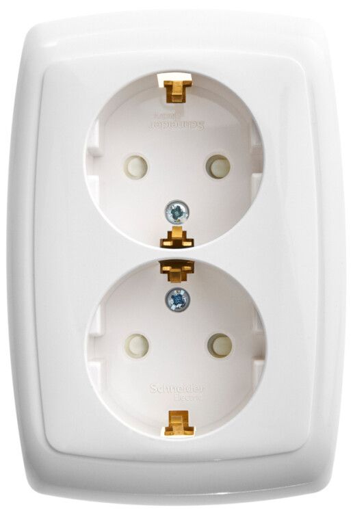 Розетка 2-м СП Рондо 16А IP20 250В без заземл. защ. шторки бел. SchE RS16-225-BI APC