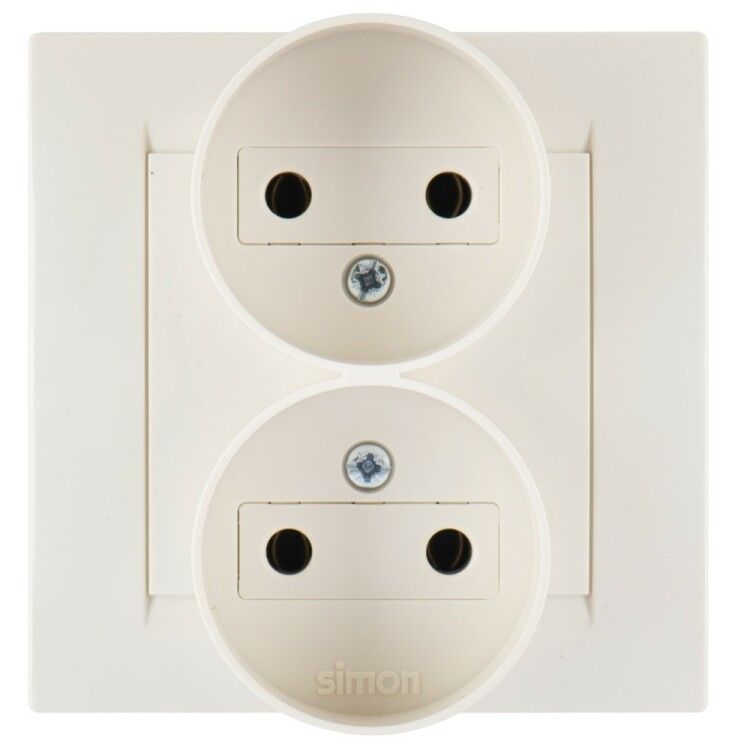 Розетка двойная без заземления 16А 250В винтовой зажим слоновая кость от бренда Simon (артикул 1590457-031) предназначена для подключения однопhasных бытовых приборов мощностью до 3,5 кВт в помещениях с умеренным климатом. Конструкция выполнена из безопасного пластика без галогенов, подходит для скрытой проводки.