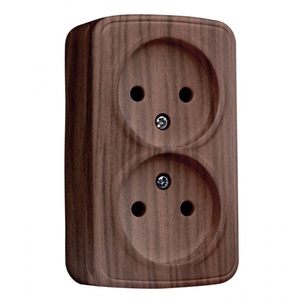 Розетка 2-местная ОП Минск 10А без заземления тёмное дерево EKF | EGR10-102-40