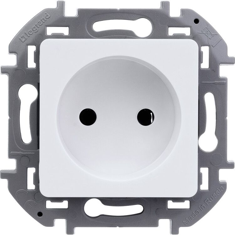 Розетка штепсельная 1-местная 16 А 250 В без заземления без рамки белая от Legrand (серии INSPIRIA, артикул 673710) предназначена для подключения бытовых приборов в помещениях с двухпроводной сетью без защитного заземления. Устройство рассчитано на постоянную нагрузку до 3680 Вт и обеспечивает надёжный контакт благодаря качественным материалам и продуманной конструкции.