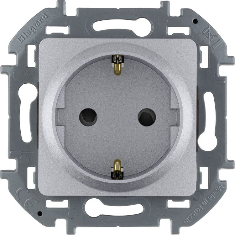 Розетка 1-м СП Inspiria 16А IP20 250В 2P+E защ. шторки немецк. стандарт механизм алюм. IEK 673732 Legrand