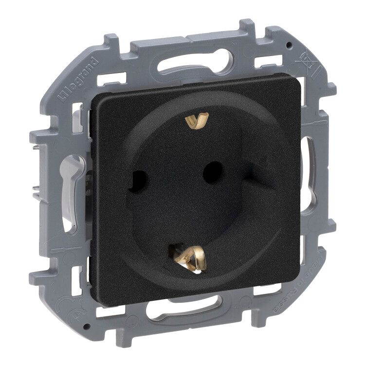 - Розетка силовая 2К+З со шторками 16 А 250 В~ немецкий стандарт антрацит от Legrand (INSPIRIA) идеально сочетается с выключателями и другим оборудованием этой же серии - для единых интерьеров выбирайте один дизайн
