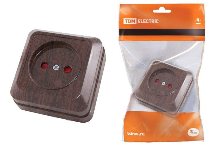Розетка 2П открытой установки с з/ш IP20 10А, бук"Ладога" | SQ1801-0037 TDM