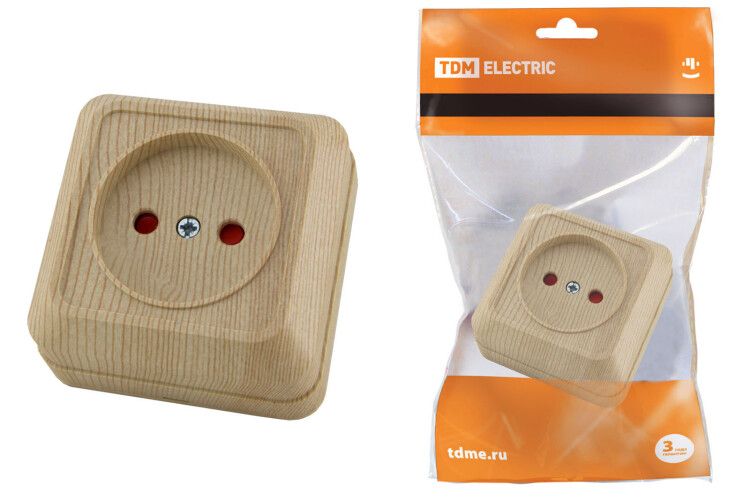 Розетка 2П открытой установки с з/ш IP20 10А, сосна "Ладога" | SQ1801-0053 TDM