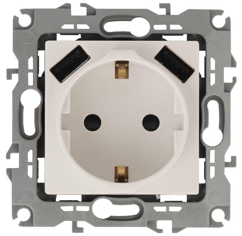 Розетка 2P+E 16A-250В, штор. с 2xUSB 5В-3А, Эра Elegance, слоновая кость 14-4109-02 - Б0047868