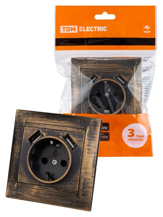 | Розетка 2П+З 16А 250В + 2 USB порта 2,1А 5В старинная бронза "Лама" | SQ1815-0772 | TDM | 02.03.2026 | Под заказ | 722,52 ₽ | шт. | от 30 дней |