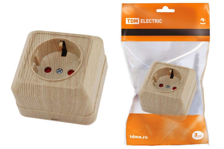 Розетка 2П+З открытой установки с з/ш IP20 16А, сосна "Ладога" | SQ1801-0054 TDM