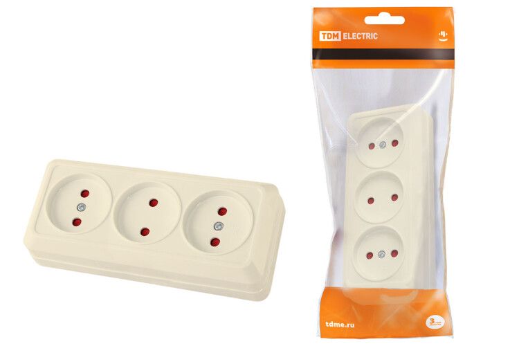 Розетка 3-х местная горизонтальная 2П открытой установки IP20 10A с з/ш сл. кость "Ладога" | SQ1801-0225 TDM