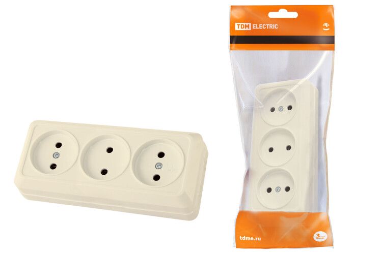Розетка 3-х местная горизонтальная 2П открытой установки IP20 10A сл. кость "Ладога" | SQ1801-0224 TDM