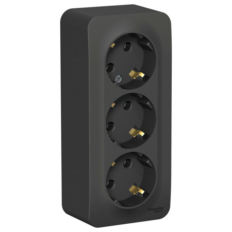 Розетка BLANCA наружная трехпостовая, с заземлением, без шторок, изолирующей пластиной, 16А, 250В, антрацит - BLNRA010316 APC