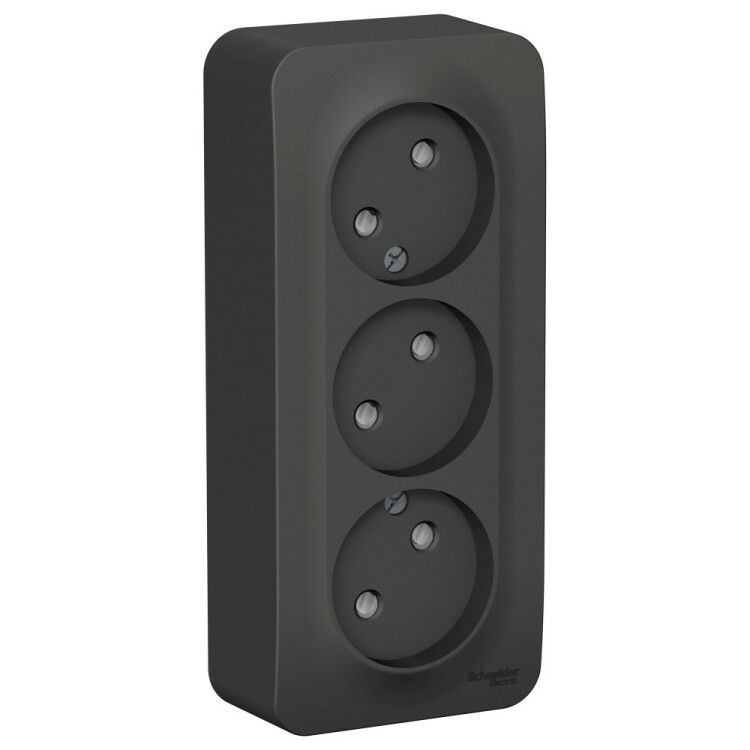 Розетка Systeme Electric BLANCA (арт. blnra001316) - трёхпозиционная наружная розетка без заземления, предназначенная для временного или постоянного подключения бытовых устройств в условиях повышенной влажности или запылённости. Благодаря изоляционной пластине и шторкам на контактах она подходит для использования в помещениях с детьми, а матовая антрацитовая отделка устойчива к царапинам.