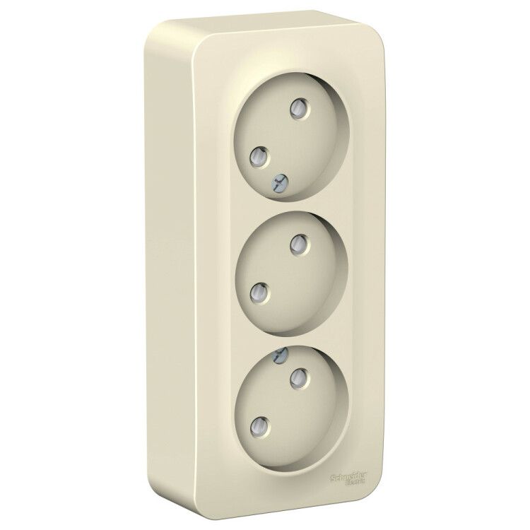 Розетка BLANCA наружная трехпостовая, без заземления, со шторками, с изолирующей пластиной, 16А, 250В, молочный - BLNRA001312 APC не поставляется, возможно товар снят с производства, по запросу, наши инженеры помогут подобрать аналоги, замены.