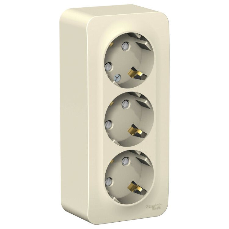 Розетка 3-м ОП Blanca 16А IP20 250В с заземл. защ. шторки изолир. пластиной молоч. SE BLNRA011312 APC