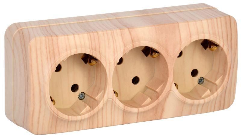Розетка трехместная наружная с заземлением и защитным контактом открытого монтажа 16А сосна от IEK (ИЭК), артикул erh31-k34-16, предназначена для надёжного подключения бытовых и профессиональных устройств в условиях открытой проводки. Продукт из серии GLORY сочетает функциональность, устойчивость к внешним воздействиям и натуральный деревянный дизайн, подходящий для загородных домов и помещений в стиле лофт.