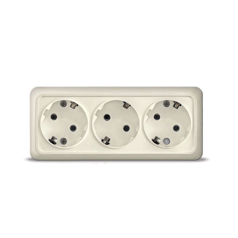 Розетка трехместная Олимп с/з, наружная, 16А, 220В, бежевая (еврослот) - 1167 Союз