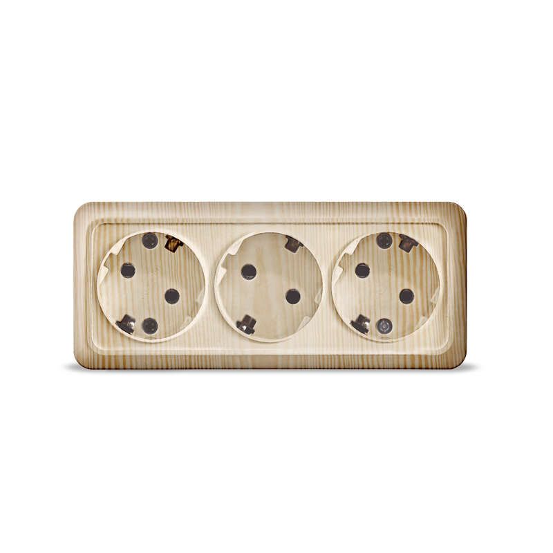 Розетка трехместная Олимп с/з, наружная, 16А, 220В, сосна (еврослот) - 1173 Союз