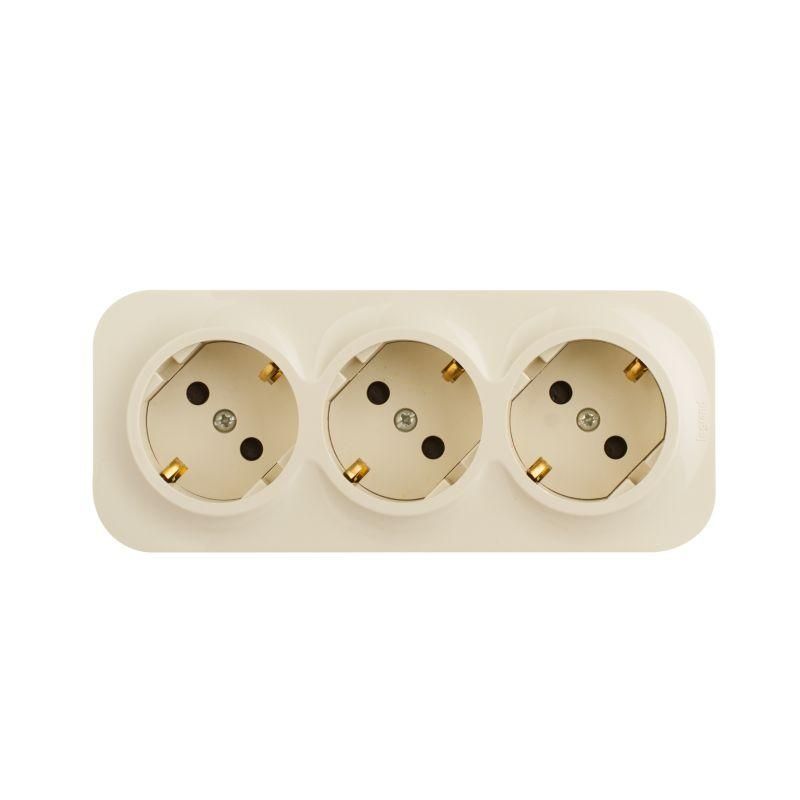 Розетка 3-местная для открытой установки с заземлением защитными шторками предварительным подключением 16А слоновая кость QUTEO - 782268 Legrand
