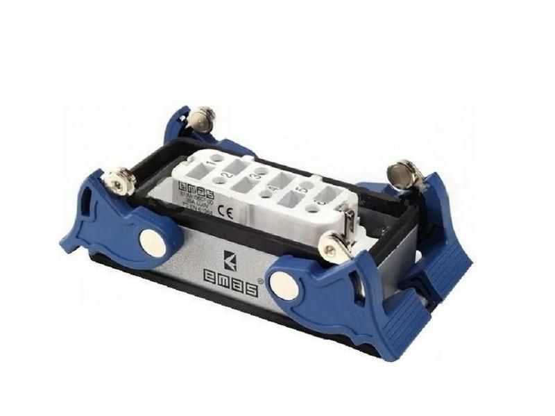 Розетка 4-полюсная для панели 6П 35А, металлический кожух с гнездом 6-полюсный 35А, нижний ввод, степень защиты IP65 от бренда EMAS - это промышленный разъём для надёжного подключения переносного оборудования в условиях повышенной запылённости, влаги и механических нагрузок. Артикул ebm606pm44 предназначен для установки в распределительные щиты и использование на объектах с жёсткими требованиями к защите.
