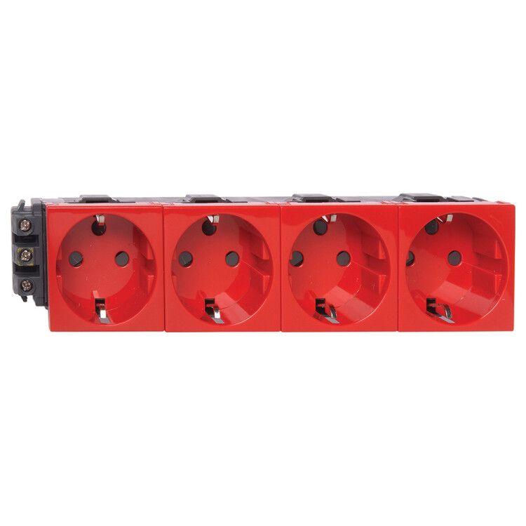 Розетка с заземлением 8 модулей немецкий стандарт с ключом и механической блокировкой красная для кабель-каналов от Legrand серии Mosaic предназначена для надёжного подключения оборудования в условиях повышенной безопасности и частой эксплуатации, особенно там, где требуется запрет доступа посторонним - например, на производстве, в медицинских учреждениях или общественных зонах.