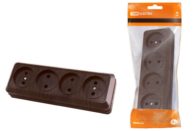 Розетка 4-х местная горизонтальная 2П открытой установки IP20 10A бук "Ладога" | SQ1801-0328 TDM