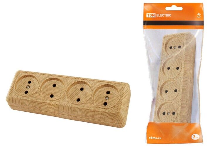 Розетка 4-х местная горизонтальная 2П открытой установки IP20 10A сосна "Ладога" | SQ1801-0428 TDM