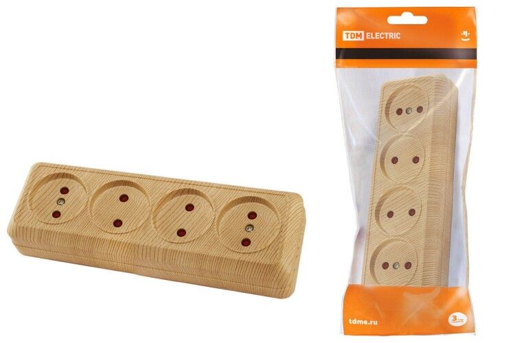 Розетка 4-х местная горизонтальная 2П открытой установки IP20 10A с з/ш сосна "Ладога" | SQ1801-0429 TDM