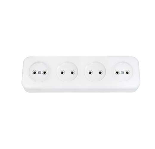 - Розетка четырехместная наружная 16А без заземления белая от BYLECTRICA (ра16-246) хорошо сочетается с другими изделиями серии Моноблок - удобно при модульной сборке распределительных щитов