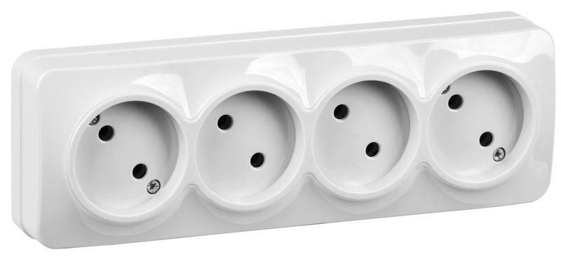- Четыре розетки в одном корпусе экономят место и снижают количество точек установки