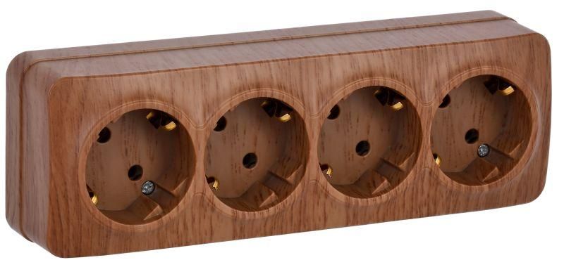 Розетка четырехместная наружная с заземлением дуб 16А РС24-3-ХД предназначена для подключения бытовых и профессиональных устройств в местах с открытой прокладкой кабеля. Подходит для установки на улице, в гаражах, на дачах, в цехах, на террасах и в интерьерах в стиле лофт. Четыре выхода позволяют одновременно использовать несколько приборов без переходников. Наличие заземления обеспечивает безопасную работу оборудования с металлическими корпусами - например, перфораторов, насосов, сварочных аппаратов.