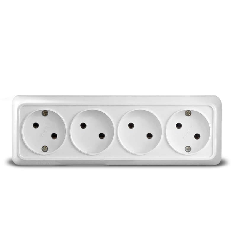 Розетка четырехместная Олимп б/з, наружная, 16А, 220В, белая (еврослот) - 1162 Союз