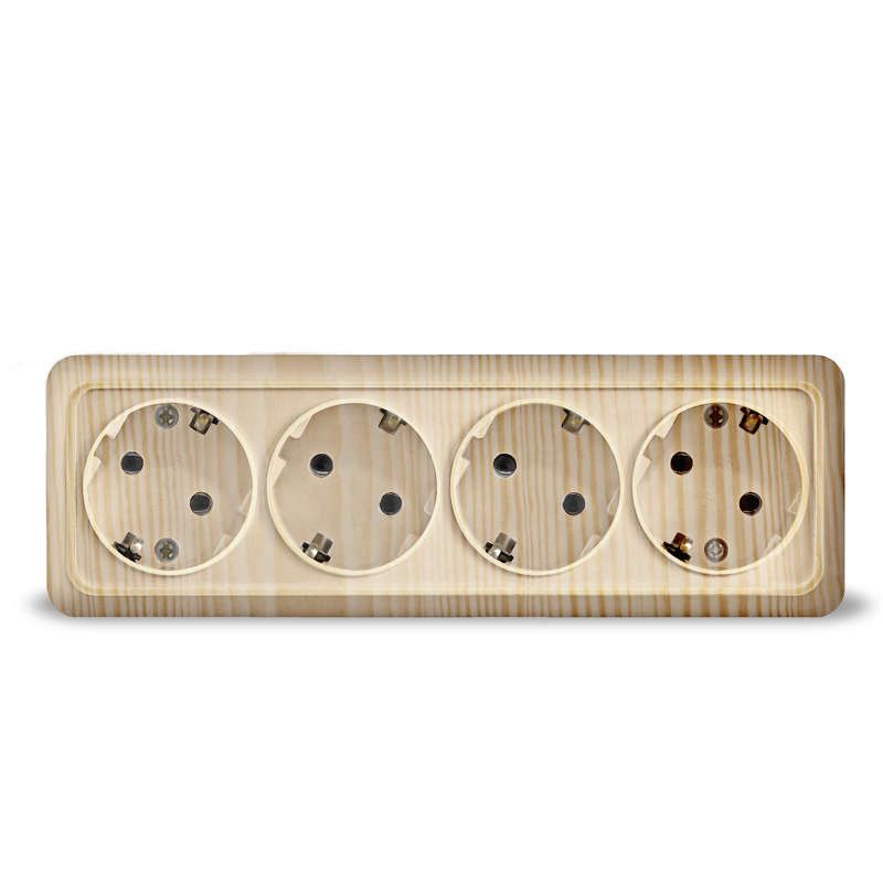 Розетка четырехместная Олимп с/з, наружная, 16А, 220В, сосна (еврослот) - 1175 Союз