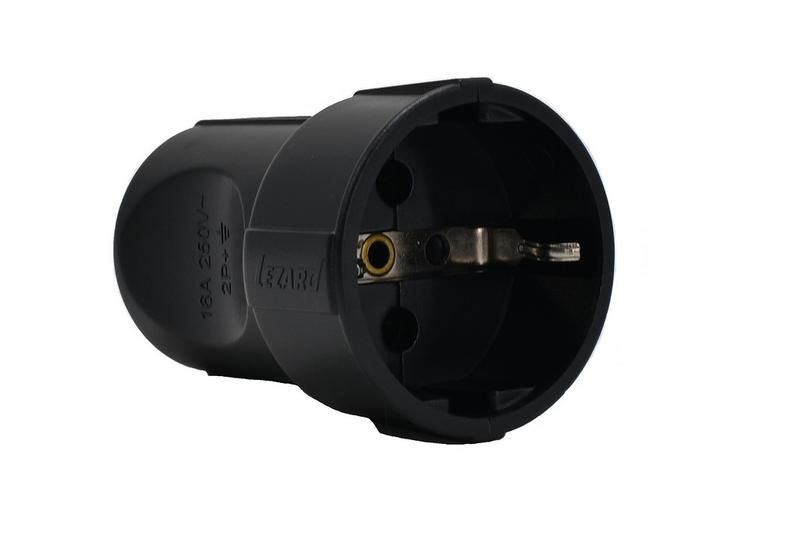 Розетка штепсельная с заземлением черная от бренда LEZARD с артикулом 715-0600-606b предназначена для надёжного подключения бытовых и профессиональных устройств с трёхконтактной вилкой, обеспечивая безопасный отвод тока утечки через заземление.