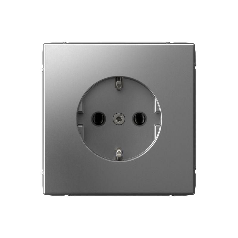 - Розетка с заземлением, 16А, механизм, сталь, SE работает только при наличии заземляющей линии в проводке - если её нет, установка не даёт эффекта защиты