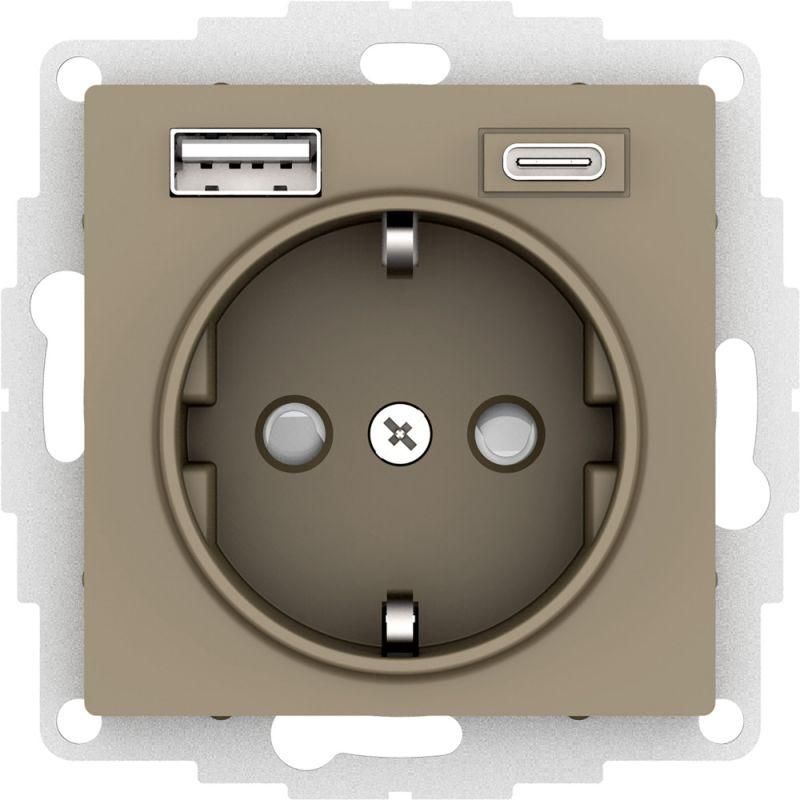 Розетка AtlasDesign 16А с 2-мя заряд. устройствами USB тип A+C 5В/2.4А/3.0А 2х5В/1.5А механизм шампань SE ATN000532 APC