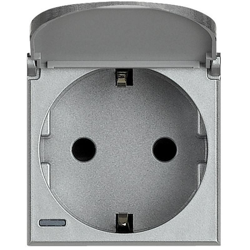 Axolute Розетка 2К+З с крышкой, 10/16 А 250 В с боковыми заземляющими контактами Schuko, с экранированными контактами, клеммы с автоматическим зажимом, алюминий, немецкий стандарт