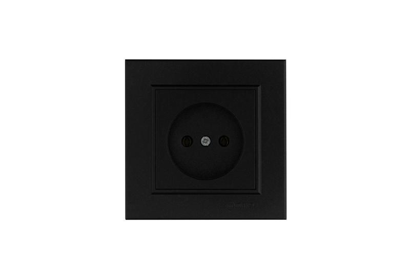 Розетка без заземления черная от бренда Makel, артикул 56054022, предназначена для подключения бытовых приборов, не требующих защиты от утечки тока через заземление. Принадлежит к серии Karea - надёжным решениям для базовой электропроводки.