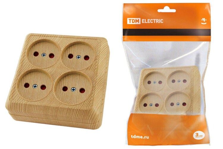 Розетка четырехместная 2П открытой установки IP20 10A с защитными шторками сосна "Ладога" | SQ1801-0421 TDM