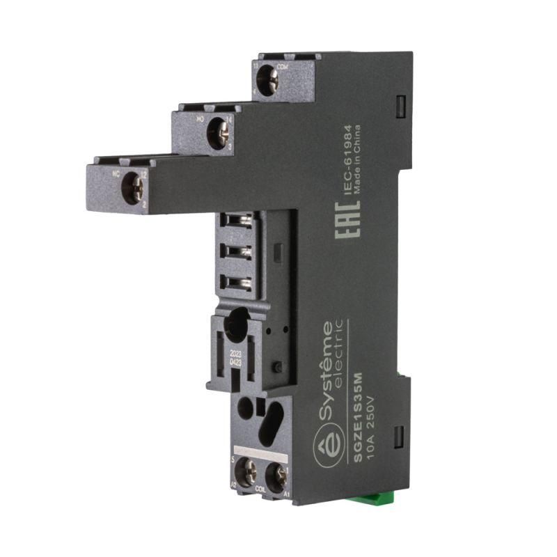 Розетка для реле 1 нормально-открытый контакт (1НО) с цоколем SE от Systeme Electric (артикул sgze1s35m) предназначена для быстрой установки и замены реле типа SXM 1СО в системах автоматизации. Она обеспечивает надёжное электрическое соединение через винтовые клеммы и монтируется на DIN-рейку, что ускоряет обслуживание и снижает время простоя.