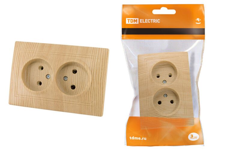 Розетка двойная 2П 10А 250В серия Таймыр (сосна) от TDM ELECTRIC - это скрыто установленное двухпозиционное устройство с заземлением и защитой от перенапряжений, предназначенное для постоянного подключения бытовой и офисной техники. Артикул sq1814-0213 сочетает натуральный деревянный декор с надёжной конструкцией, подходящей для жилых и общественных помещений.