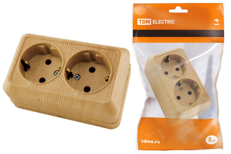 Розетка двойная 2П+3 открытой установки IP20 16А 250В (керамика) сосна "Ладога" | SQ1801-0413 TDM
