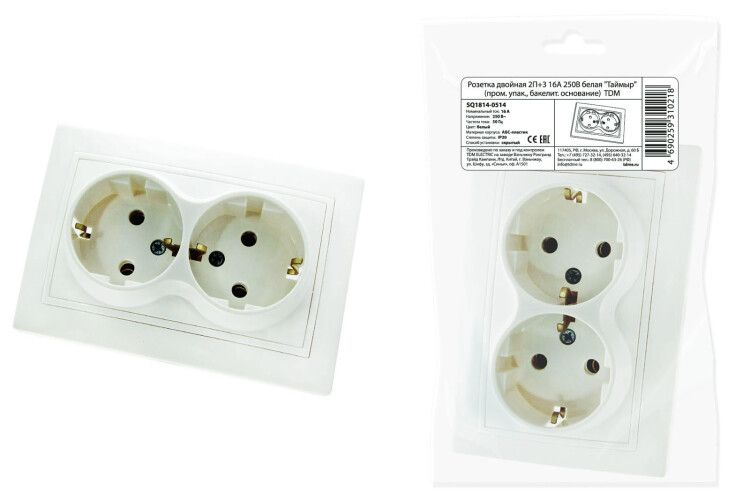 Розетка двойная 2П+З 16А 250В белая (промышленная упаковка, бакелитовое основание, серия Таймыр) от TDM ELECTRIC предназначена для надёжного подключения бытовых и профессиональных электроприборов в условиях повышенной нагрузки. Несмотря на промышленную комплектацию, она эффективно используется в жилых и общественных зонах благодаря прочному корпусу и защищённой конструкции.