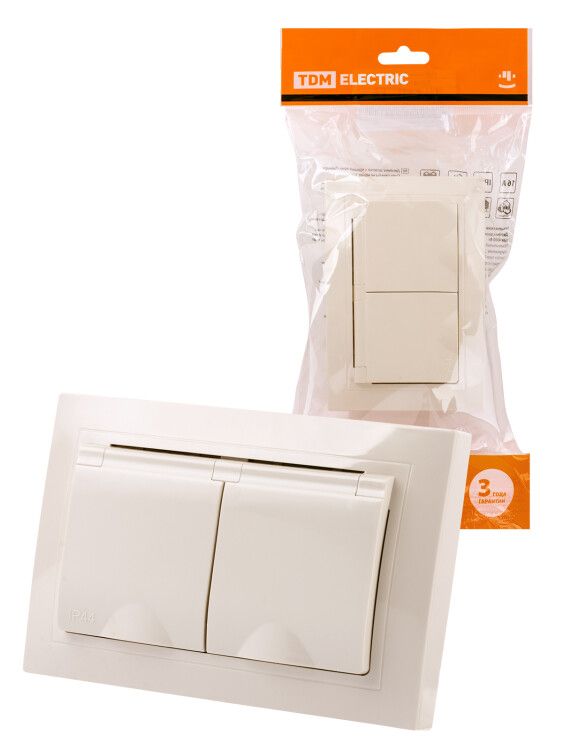 Розетка двойная 2П+З с защ. шт. и крышкой 16А 250В IP44 сл. кость "Таймыр" | SQ1814-0176 TDM