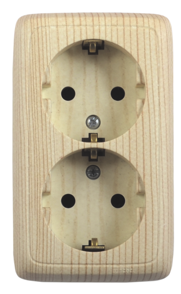 Розетка двойная наружная с заземлением сосна - РА16-151-02 HEGEL