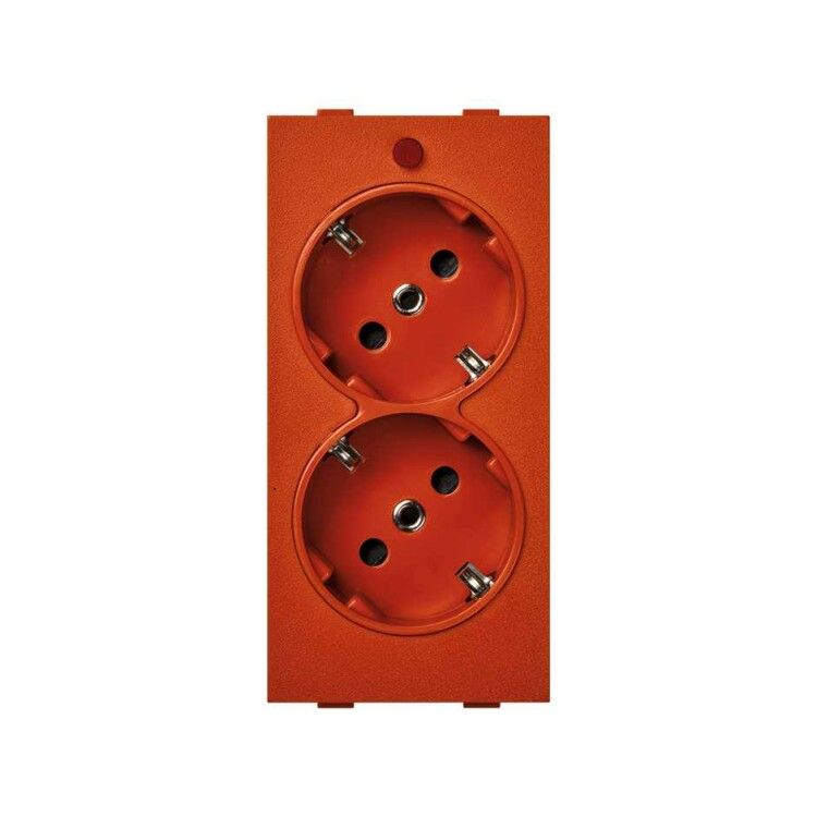 Эта розетка используется там, где требуется одновременное подключение двух устройств с заземлением - например, компьютер, телевизор, зарядное устройство или электроинструмент. Подходит для установки в жилых домах, офисах, мастерских и на производстве. Оранжевый цвет позволяет легко выделять её в схеме или на стене, что удобно при организации распределительных щитов или зон с особым режимом питания.