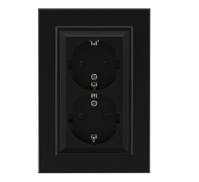 Розетка двойная с заземлением черная от бренда Makel, артикул 56054082 из серии Karea - надёжный вариант для подключения двух бытовых устройств с обеспечением защиты от поражения током через заземление. Подходит для установки в жилых помещениях, офисах и на рабочих местах.