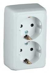 Розетка двойная наружная с заземлением со шторками изоляционной пластиной белая - РА16-154 HEGEL