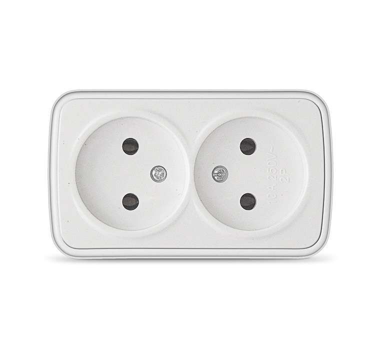 Розетка двойная без заземления 16А IP20 белая предназначена для временного или постоянного подключения одновременно двух устройств мощностью до 3,5 кВт (при 230 В и 16 А). Применяется в домах, дачах, гаражах, подсобках и других помещениях, где нет требований к защите от влаги и пыли. Не подходит для ванных комнат, кухонь с повышенной влажностью или на улице.
